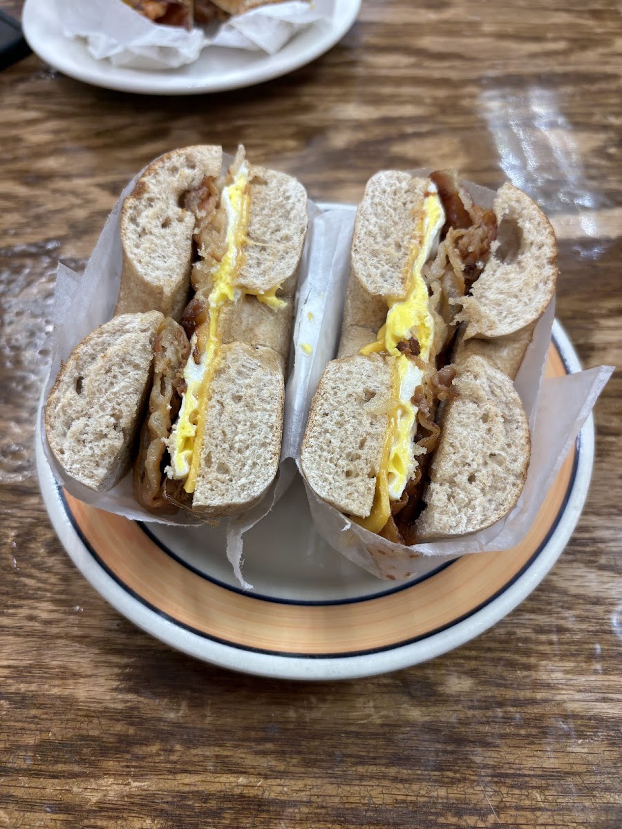 We were in dire need of a BEC and found the perfect place to get one. 10/10 service, and tasted AMAZING. Got the whole wheat bagel.